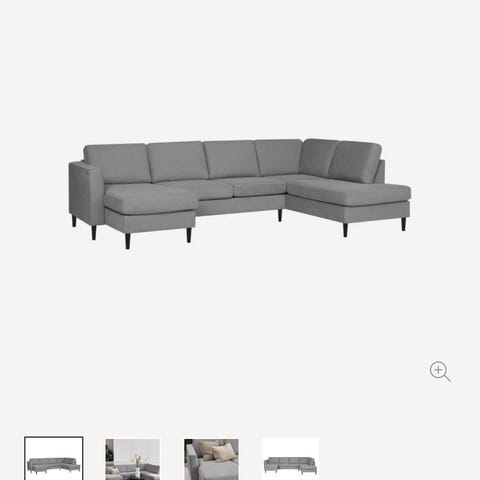 Selger en stilren hjørnesofa i grått ullstoff. Sofaen er i svært god stand med jevne puter og uten flekker, skader eller nupper.