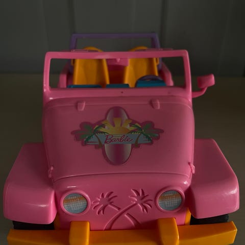 Kjempetøff Barbiebil selges. Den mangler sidespeilene ellers er den hel og pen