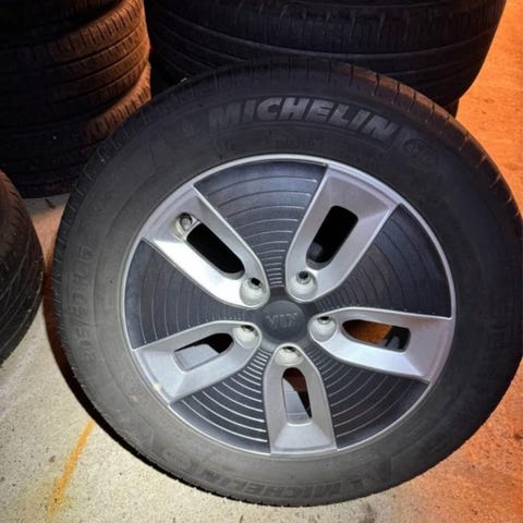Ingen skader på felgene, dekkene er helt på tampen av sin karriere...