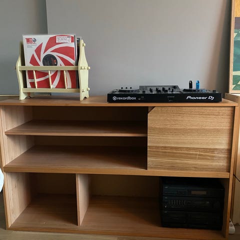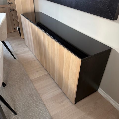 Bestå skjenk fra IKEA med glassplate på toppen.