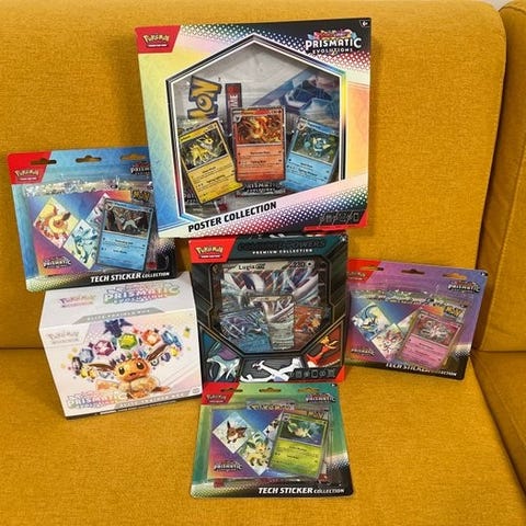 Selger nye og uåpnede Prismatic Evolutions Elite Trainer Box (2-pack). Perfekt for samlere eller deg som vil sikre deg et ettertraktet sett. Pakkene er sealed og blitt importert fra utlandet.
