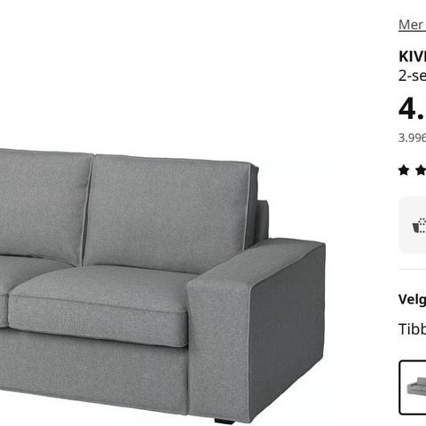 Selger en IKEA KIVIK 3-seters sofa i grå/beige trekk (Tibbleby).