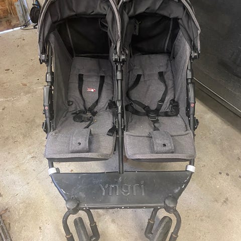 Kjempefin tvilling vogn.Stor gode hjul.Følger med en bag til baby og regntrekk