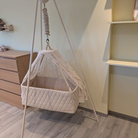 Avstiverbunn, sengehimmel og white noise maskin følger med.