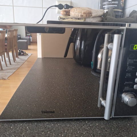 Mikrobølgeovn er lite brukt og fungerer helt fint. Følger med grillrist og bruksanvisning.