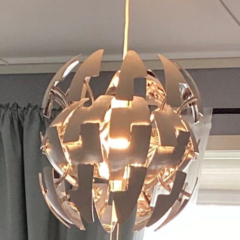 Stemningsfull taklampe fra IKEA i nydelig plommerød farge på utsiden. Gullfarge på innsiden. Diameter 45 cm. Pent brukt. Bør hentes.