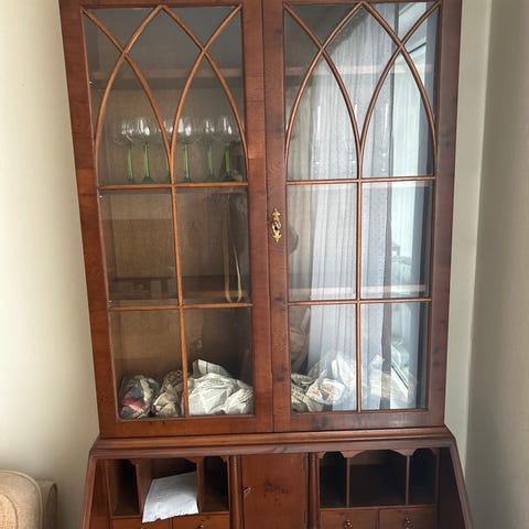 Pent Vitrineskap i klassisk gustaviansk skap selges for 2500 kr. Pris kan diskuteres .
