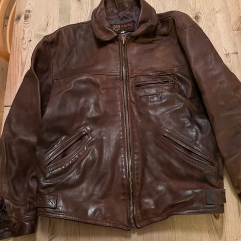 Jakken har ekstra for som glides på. Den er i tykk kvalitativ skinn
