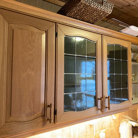 Noen av underskapene har diverse skader. Overskapene er i god stand og resten er i ok stand.