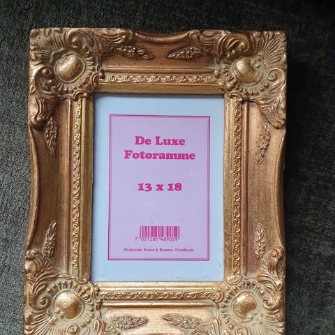 Versailles bilderamme i størrelse 13 x 18 cm. Rammen har en dekorativ profil med ornamenter og gullfarget finish. Egnet for stående eller liggende plassering av fotografier eller trykk i format 13 x 18 cm. Passer til bruk på bord, hylle eller andre flater innendørs.