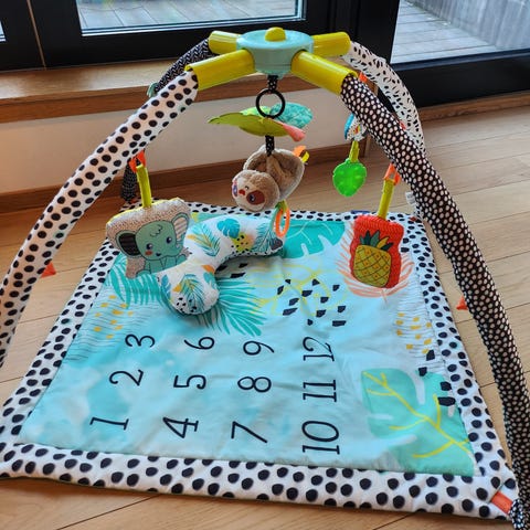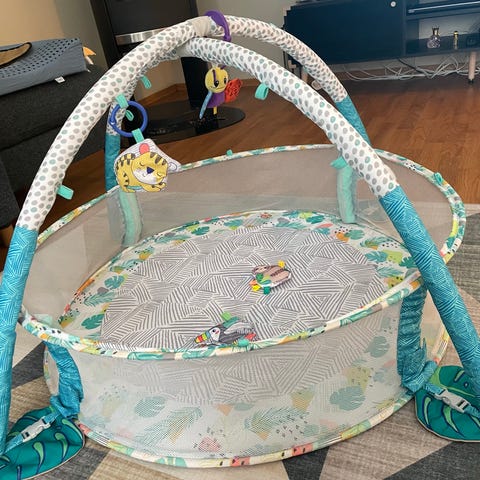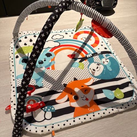 Fantastisk og komplett babygym fra infantino. Den har vært superpopulær hjemme hos oss og tvillingene har elsket å ligge i den pga de morsomme fargene og lekene. Nypris: 497 kr.