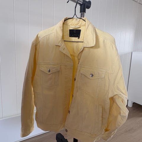 Gina Tricot The Good Project jakke for dame i størrelse S. Jakken er gul og laget av bomull. Klassisk modell med krage, knappelukking foran og brystlommer med klaff og knapp. Ermene har mansjetter med knapp, og jakken har sømdetaljer foran og bak. Passer som lett ytterjakke i hverdagen.