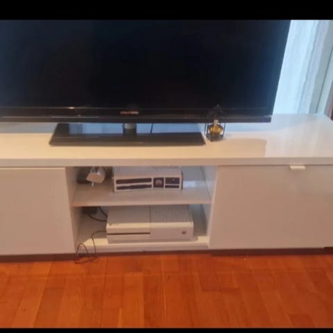 Tv benk gis bort. Må hentes lørdag 21.02.26 mellom kl. 15.00-18.00, grunnet flytting. Eller i kveld før kl 21.00. Godt brukt. Noen bruksmerker. Nære Nardosenteret i Trondheim. (Se også gjerne andre gjenstander under profilen min.)