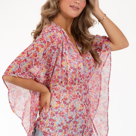 Donna topp for dame i størrelse 42. Toppen er laget i viskose og har rosa bunnfarge med blomstermønster. Modellen har vide, lagdelte ermer og rund hals. Stoffet er lett og faller mykt, egnet til bruk både til hverdags og mer pyntede anledninger. Ubrukt bluse, kjøpt på match.