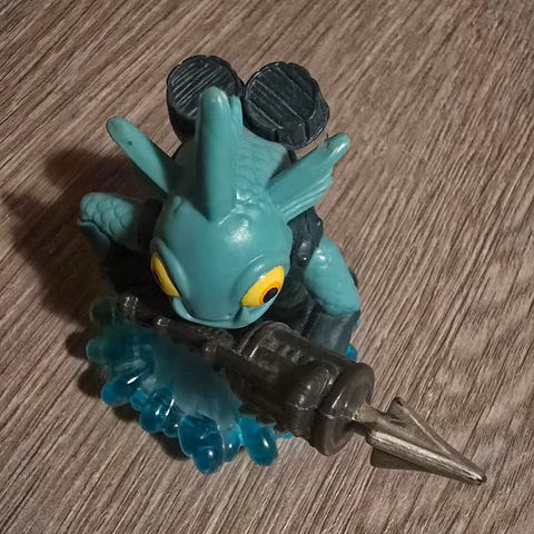 Dette er en Gill Grunt-figur fra spillserien Skylanders, nærmere bestemt fra det første spillet i serien, Skylanders: Spyro's Adventure.