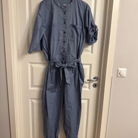 Floyd Sanne denim jumpsuit for dame i størrelse S. Jumpsuiten er i blå denim og har kort erm, krage og glidelåslukking foran. Modellen har brystlommer med klaff og knapp, samt markert midje. Plagget er egnet som hel antrekksløsning til hverdagsbruk eller fritid.