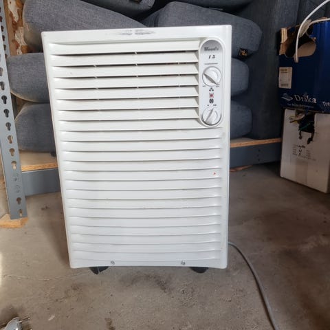 Wood’s 12 luftavfukter i hvit utførelse. Enheten har frontgitter for luftinntak og -utslipp, samt betjeningspanel med dreiebryter for innstilling av fuktighet/termostat og av/på-funksjon. Strømtilkobling via kabel på baksiden. Egnet for innendørs bruk i rom der det er behov for å redusere luftfuktighet, for eksempel kjeller, bod eller garasje. Nærmere tekniske spesifikasjoner som kapasitet og effekt er ikke oppgitt.