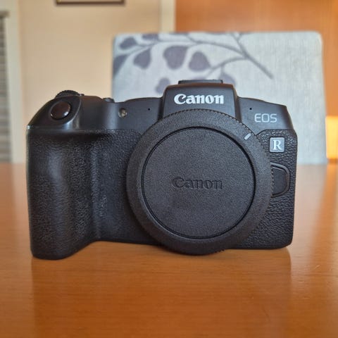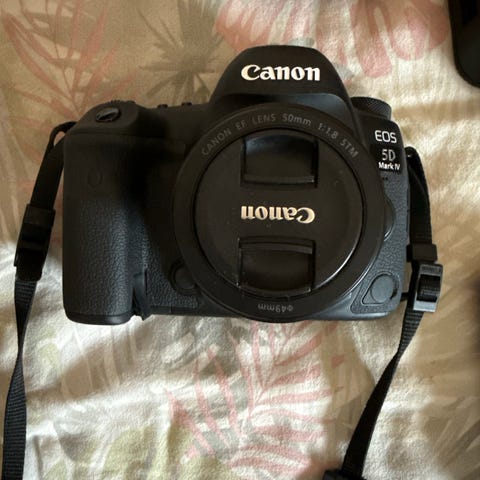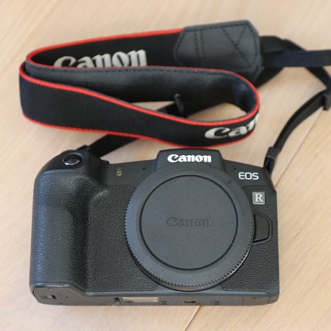 Canon EOS R digitalt speilløst kamera med mye utstyr