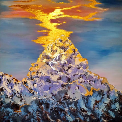 Gullfarge reflekterer lyset vakkert og gir dybde og bevegelse til maleriet.