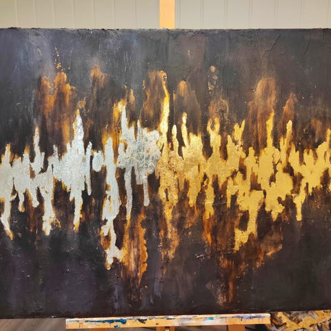 Stort abstrakt maleri med gull – rolig og elegant uttrykk