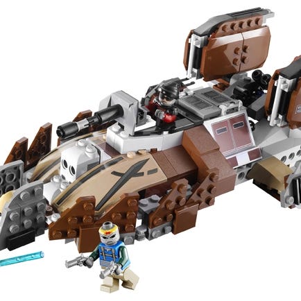 Lego Star Wars Armored Assault Tank (AAT) fra 2009. Komplett med instruksjon. Yoda har en liten sprekk på ene siden av torso, ellers fine figurer.