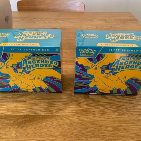 Selger 2 stk Pokémon Ascended Heroes Elite Trainer Box. Uåpnet og i plast. Perfekt for samlere eller spillere. Selges samlet eller hver for seg. Ta kontakt ved interesse.