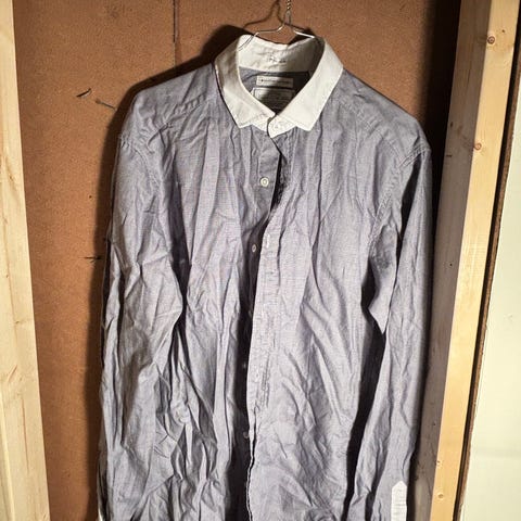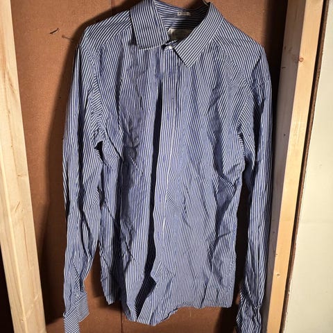 lilla og Hvit Stripete skjorte fra These Glory Days, står ikke str men tipper den er rundt en L/XL, 100% bomull, pent brukt, trenger bare å strykes litt, originalt 700 kr