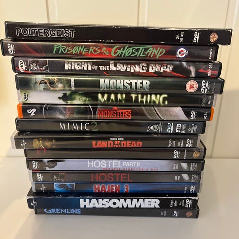 Pakke med 10 DVD-filmer i horrorsjangeren. Filmene: