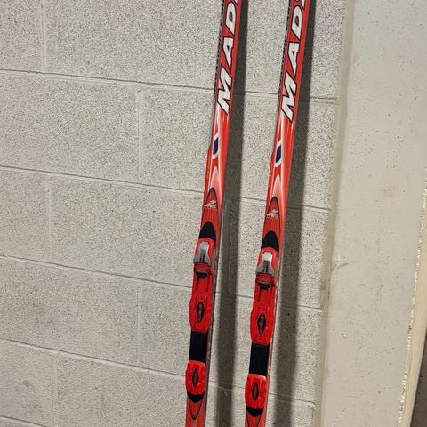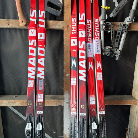 Madshus Racelight langrennski med Rottefella binding. Klassiske ski med integrerte bindinger. Passer til langrenn på preparerte løyper. Fargekombinasjon rød og svart.