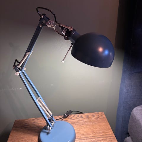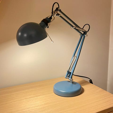 Pent brukt IKEA bordlampe selges. Passer godt til kontor eller soverom. Utover en liten skramme i skjermen der fargen er litt matt (se bilde) så er den veldig pen og funksjonell!