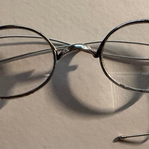 Brillene selges som et historisk samleobjekt, ikke som gullskrap, da kombinasjonen av alder, merking og originaletui er sjelden.