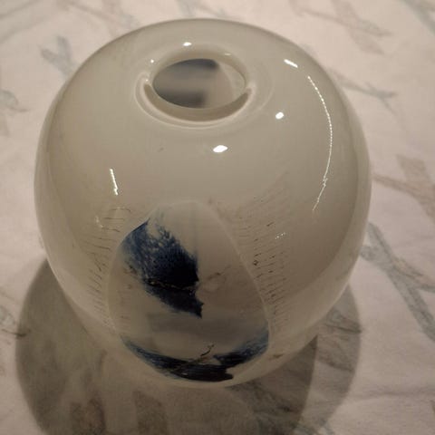 Rødt og blankt glass med bobler, syremerket signatur; H: 13 cm
