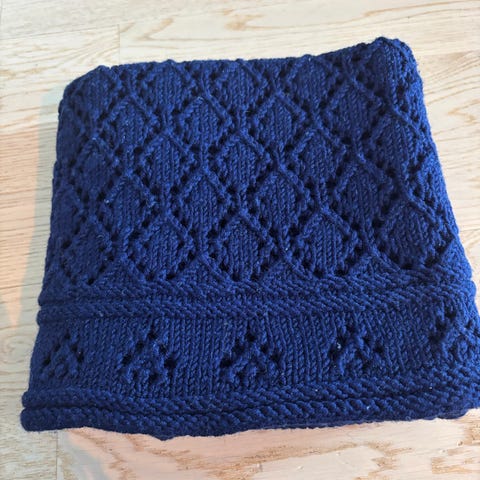 Hjemmestrikket pledd lilla baby vognteppe ull