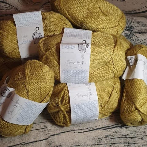 100% baby lama. 50 gram=166 meter. 28 masker på pinne 3 er 10 cm. Håndvask.