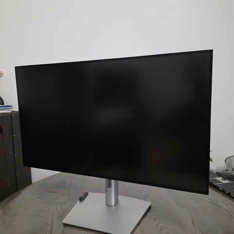Dell UltraSharp U3821DW skjerm med 38 tommers buet panel. Skjermen har innebygd USB-hub med flere USB-A- og USB-C-porter, samt DisplayPort- og HDMI-innganger. Modellen har også nettverksport og lydutgang. Egnet for kontorbruk, multitasking og arbeid som krever stor skjermflate. Har også KVM jeg har benyttet lite.