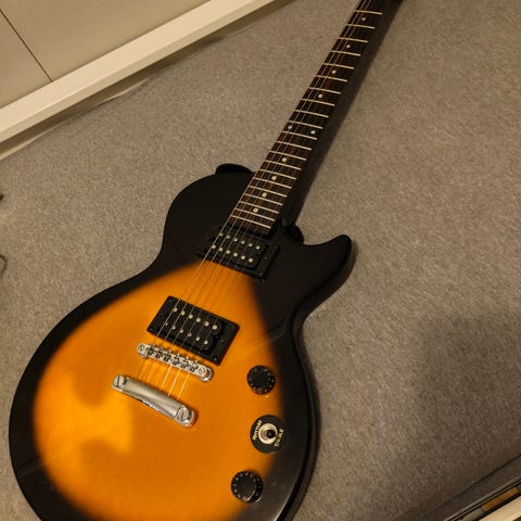 Epiphone Junior er en perfekt førstegangsgitar. Dette er gitaren jeg brukte for å lære meg å spille å jeg har vært veldig fornøyd. Nå er jeg desverre ikke lenger junior så jeg har gått over til litt tyngre saker. Den ene strengen har røket, men dette kan lett fikses med ny streng for under 100kr.