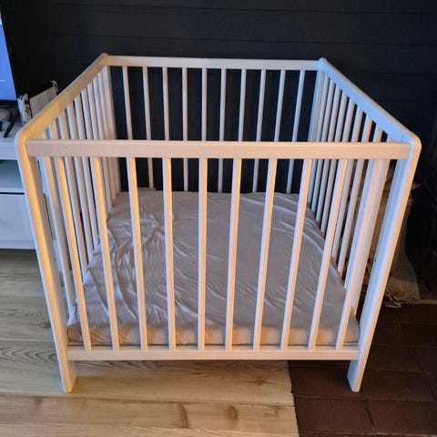Godt brukt, men fungerer helt fint. Den har noen bruksmerker, inkludert to skruehull, -har ikke noe å si for bruken. Kan stilles i to høyder. Se bilder.