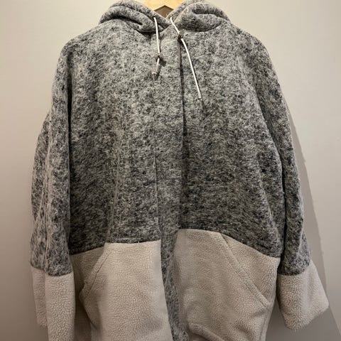 Arnie Says jakke for dame i størrelse M. Jakken er svart og laget i ullblanding (82 % ull og 18 % polyester), produsert i Italia. Modellen har glidelås foran og ribbestrikket halskant. Passer som ytterjakke eller mellomlag på kjøligere dager. Nypris 1600,-.