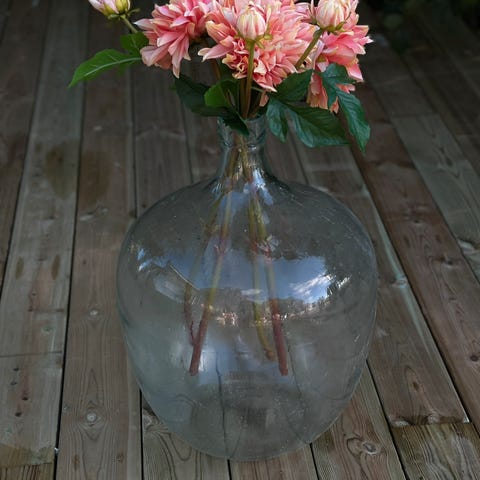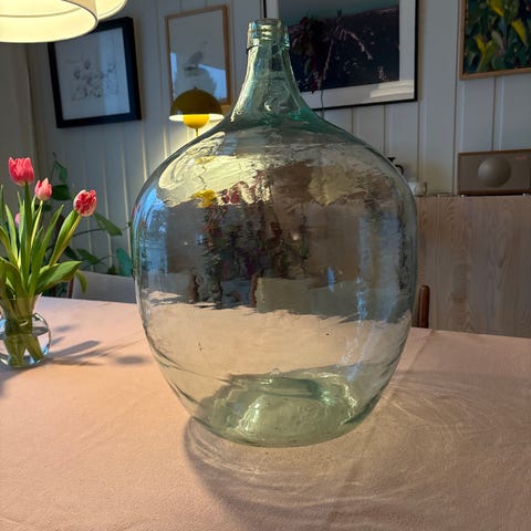 Dette er en damejeanne / demijohn, brukt historisk til vin, eddik, safting, ølbrygging eller lagring av væsker.