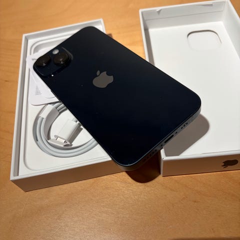 Apple iPhone 14 mobiltelefon med 128 GB lagringskapasitet i svart farge.