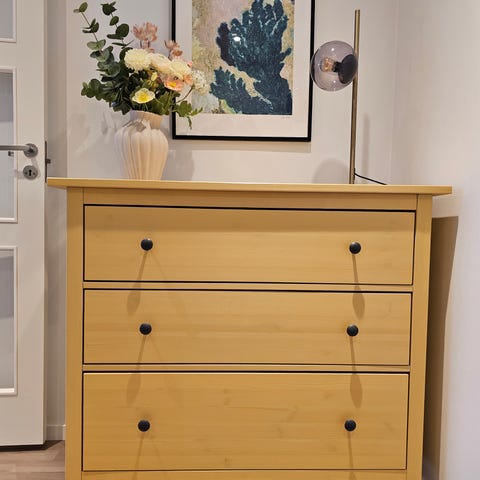 En bred kommode gir deg nok av oppbevaringsplass samt plass til lamper eller andre gjenstander du ønsker å ha oppå den.