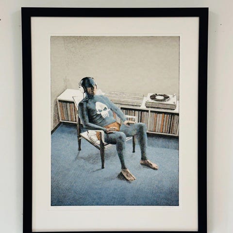 Dette er den klassiske sort/hvite utgaven i stort format 70 × 100 cm. Verket er nummerert 20/200 og fremstår i meget god stand.