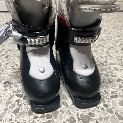 Selger slalomsko til barn som har blitt for små. Mondopoint 220-225. Tilsvarer ca str 34-35. Tabellen viser til 36. Barna her bruker 36 i vanlige sko, men disse slalomskoene er akkurat for små.