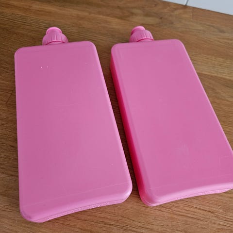 kjøleelementer i plast i fargene grønn og hvit. Egnet til bruk i kjølebager, kjølebokser eller matbokser for å holde mat og drikke kald over lengre tid. Kjøleelementene fylles og fryses ned før bruk og kan brukes om igjen flere ganger.