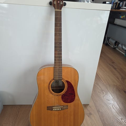 Akustisk gitar i standard full størrelse med naturfarget treverk og mørkt gripebrett. Kroppen har klassisk dreadnought-form med lydhull og mørkt plekterbrett. Gitaren passer til generell bruk som øving, akkompagnement og spilling i ulike musikksjangre. Egnet for både nybegynnere og mer erfarne gitarister som ønsker en enkel akustisk gitar.