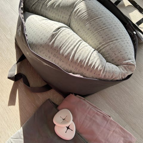 Bbhugme gravidpute i rosa farge selges.