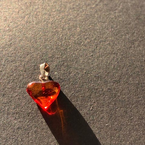 Vakkert anheng i baltisk rav, ca. 3 cm langt. Leveres med praktisk pose med snøring.