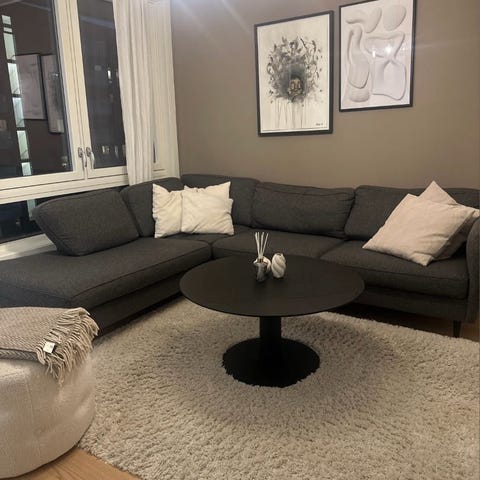 Selger grå sofa kjøpt på et lager i Oslo for 15000,-. Selges billig pga flytt. Se bilde for bruksmerke - knekt planke under, men sofaen funker helt fint.