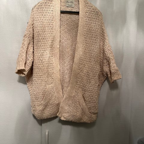 Saint Tropez cardigan for dame i størrelse L. Åpen, kortermet modell med ribbestrikket struktur. Fargen er lys rosa. Egner seg godt som et ekstra lag over topp eller kjole i hverdagen eller på jobb.