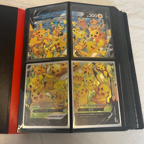 Selger en samling med pokemon kort. Bare å komme spørsmål om mer bilder eller om det skulle være noe annet. 2x2 toploader perm følger med i fargen blå.